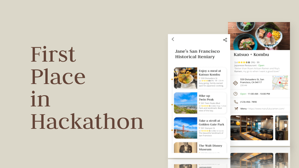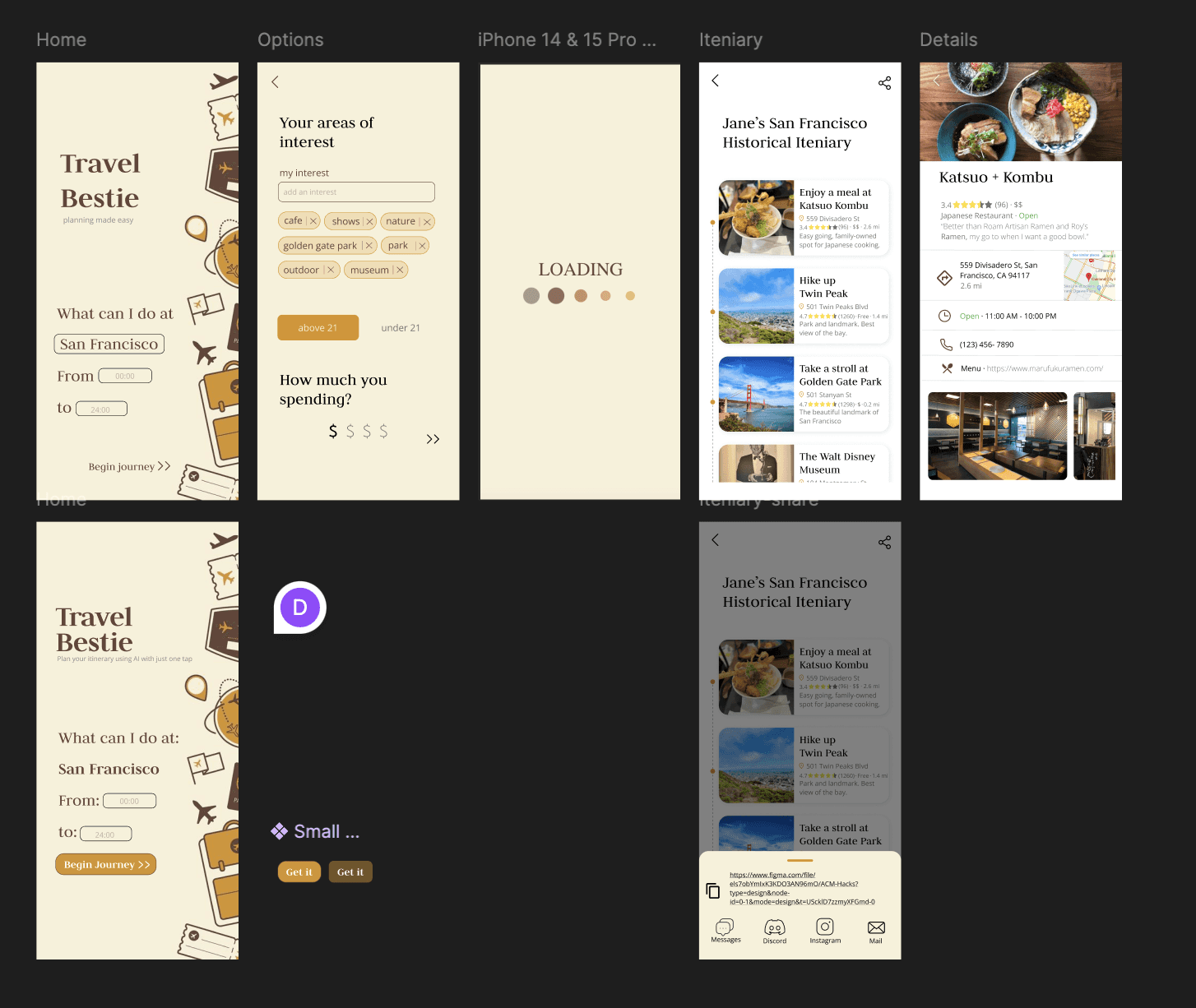 Since I already made most of the designs in Figma, it was really simple to export the them into react using the Figma design to code option. I fine-tuned the layout with Bootstrap CSS, making sure the cards, alignment, and spacings are correct and look good on the landing and itinerary page