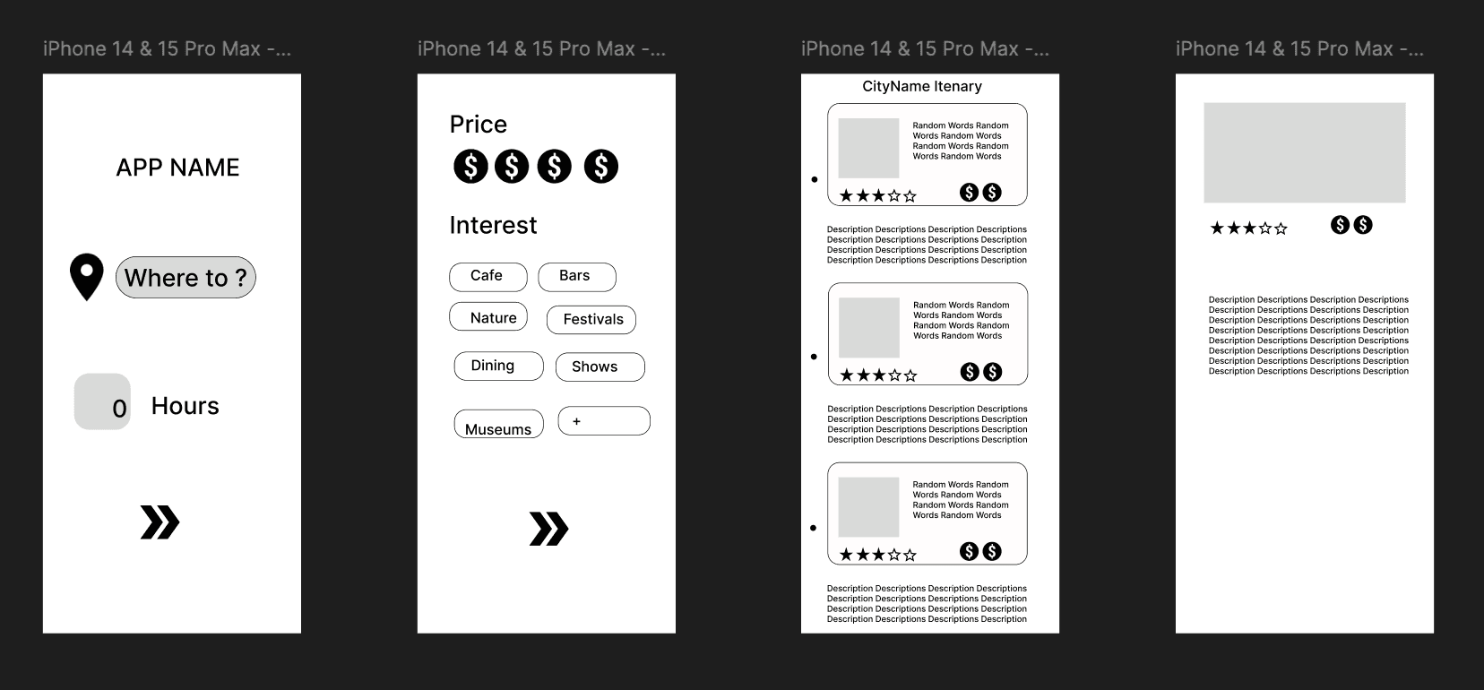 Since my teammates were handling backend integrations, I asked them to list the key API elements they could retrieve (e.g., ratings, stars, locations). I then used these inputs to shape the wireframes.